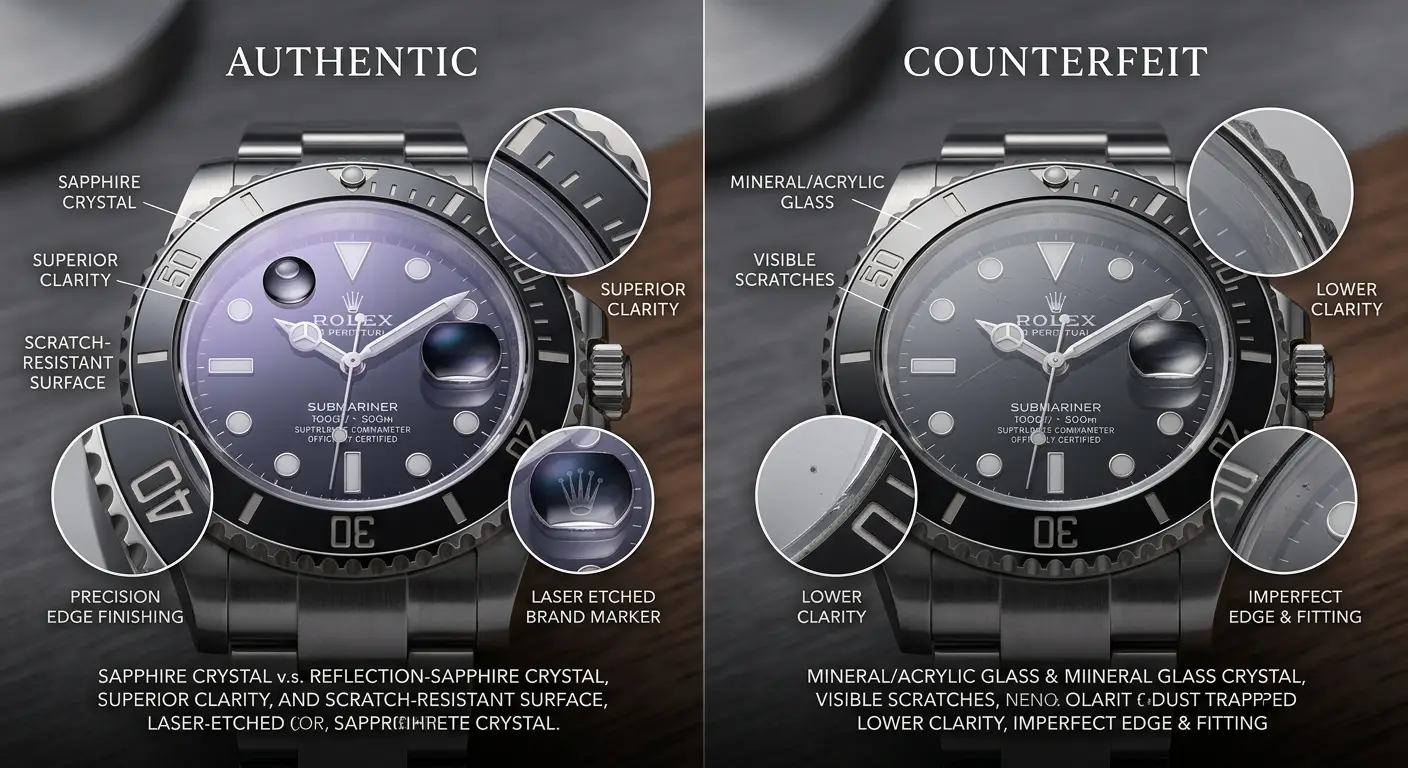 راه های تشخیص ساعت اصل از فیک بررسی نوع شیشه